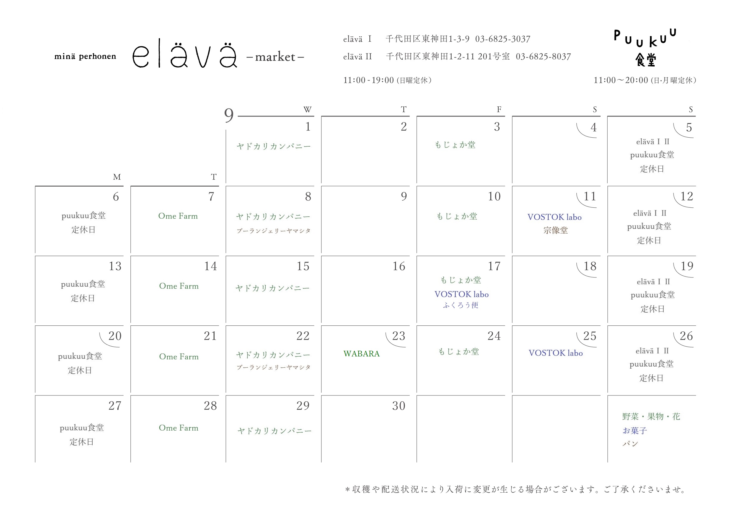 2021.08.26 elävä Ⅰのマーケットカレンダー 9月