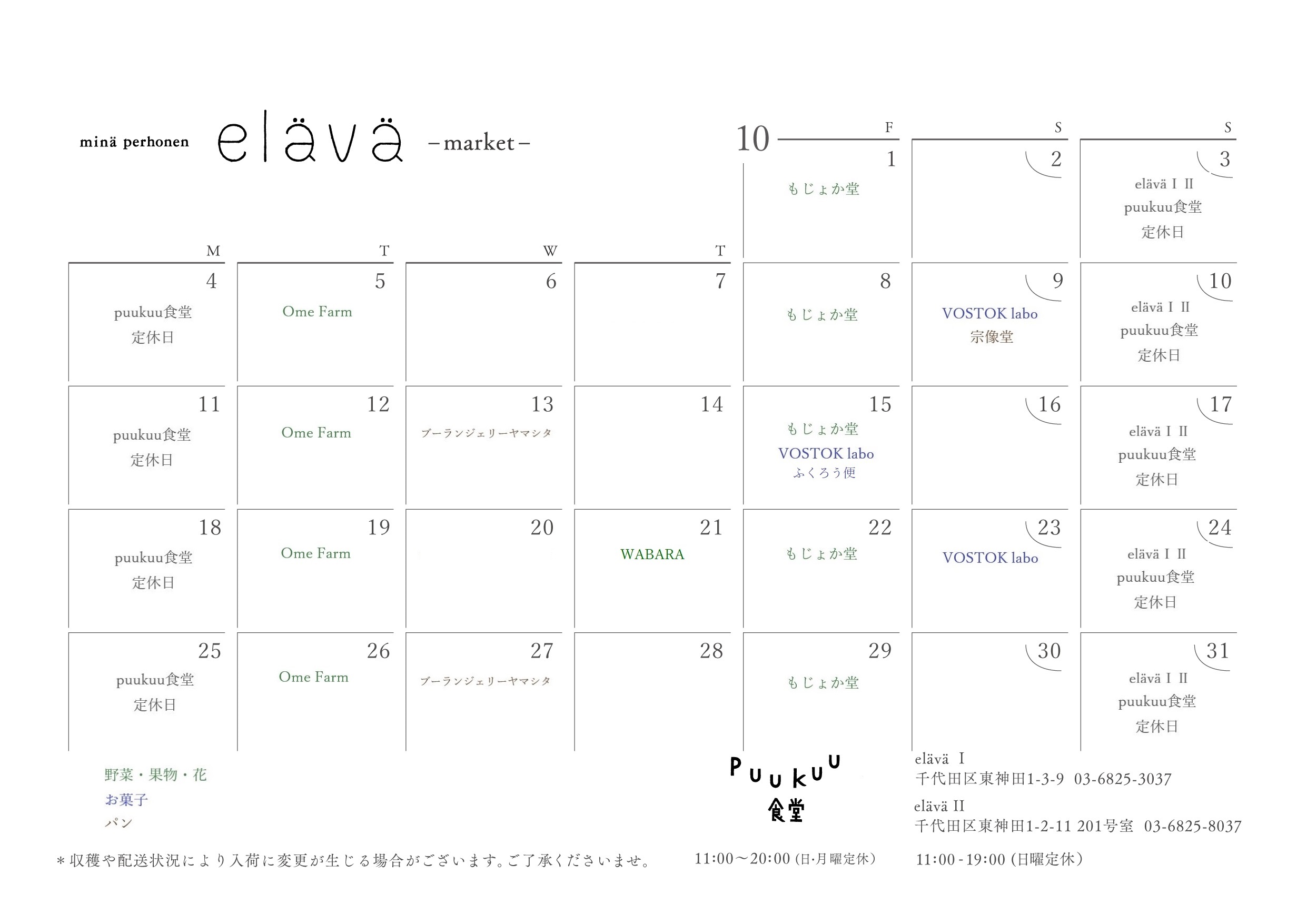 2021.09.28 elävä Ⅰのマーケットカレンダー 10月
