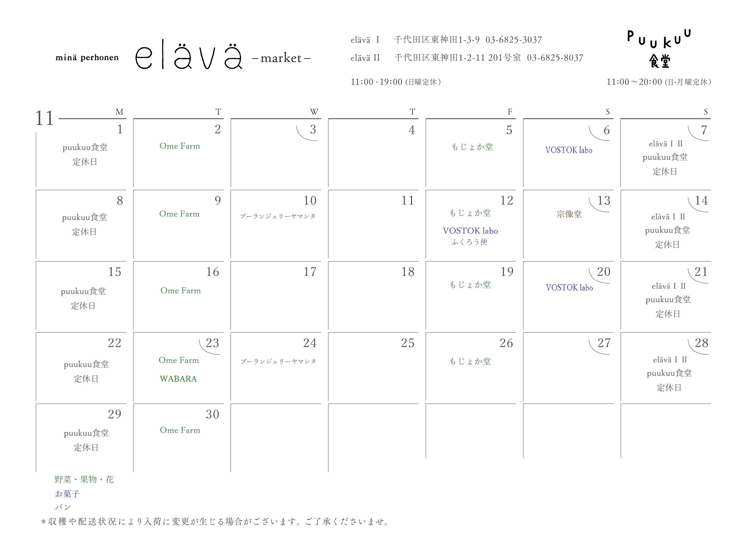 2021.10.28 elävä Ⅰのマーケットカレンダー 11月