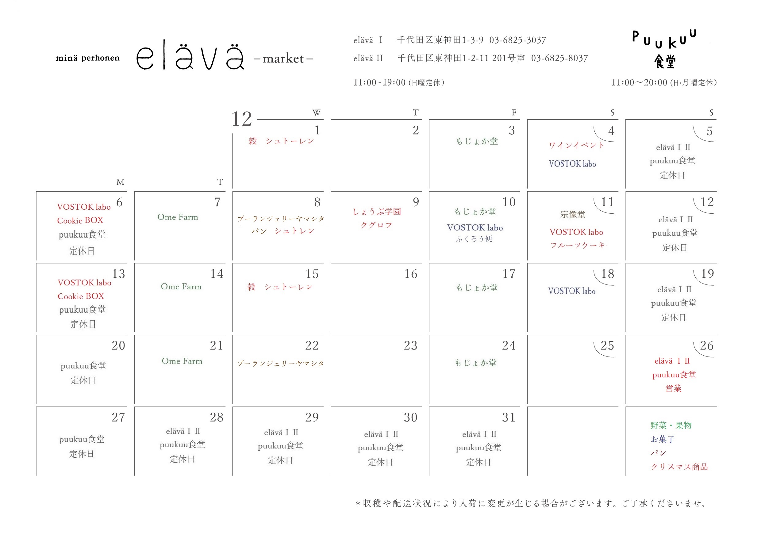 2021.11.29 elävä Ⅰのマーケットカレンダー 12月