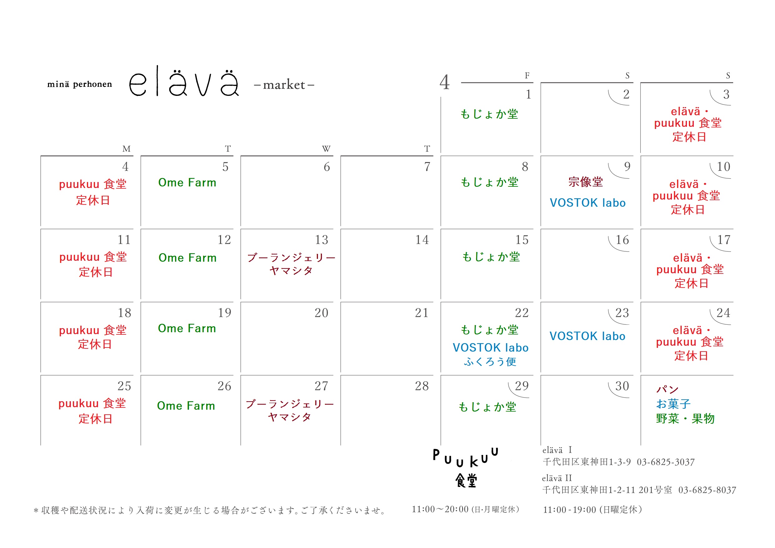 2022.03.28 elävä Ⅰのマーケットカレンダー 4月