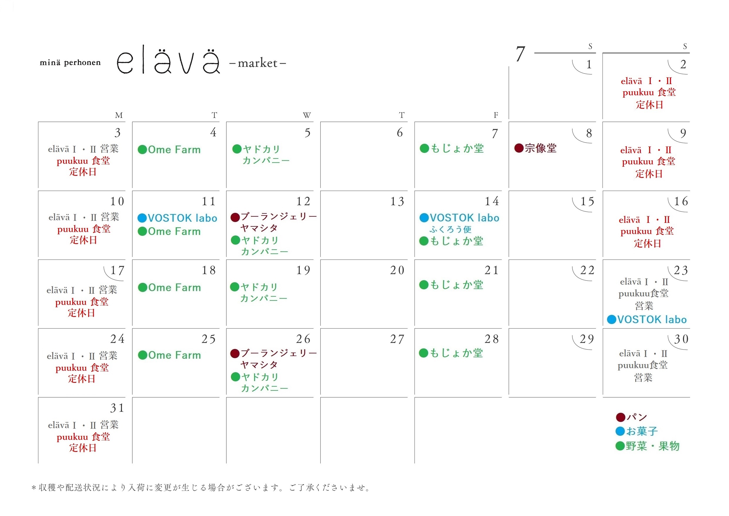 2023.6.26 elävä Ⅰのマーケットカレンダー 7月
