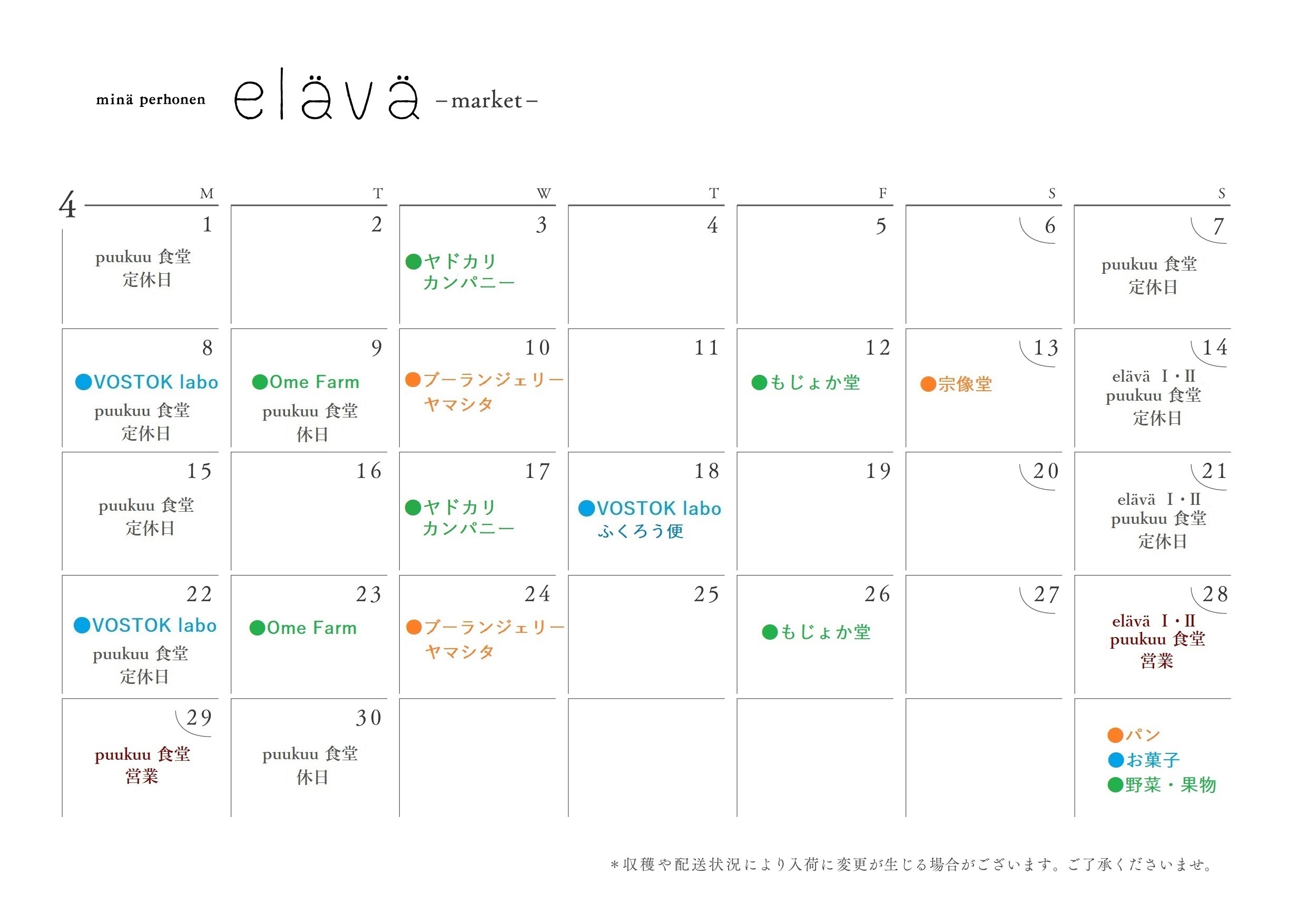 2024.3.22 elävä Ⅰのマーケットカレンダー 4月