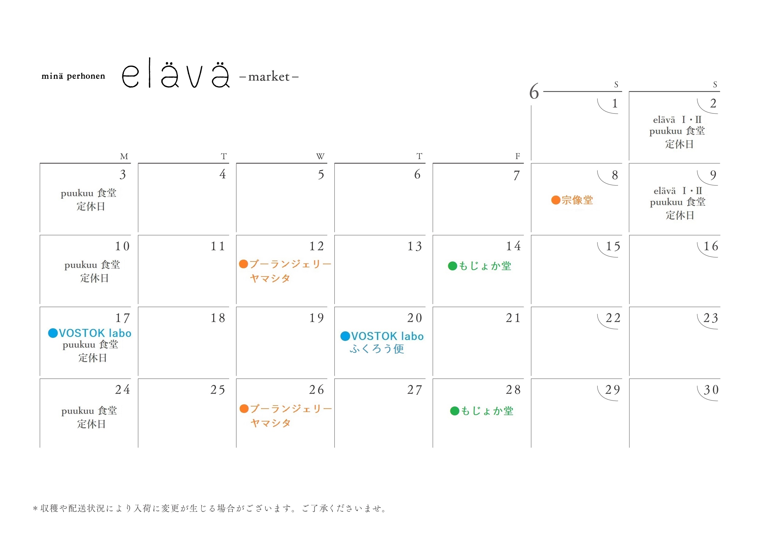 2024.5.28 elävä Ⅰのマーケットカレンダー 6月