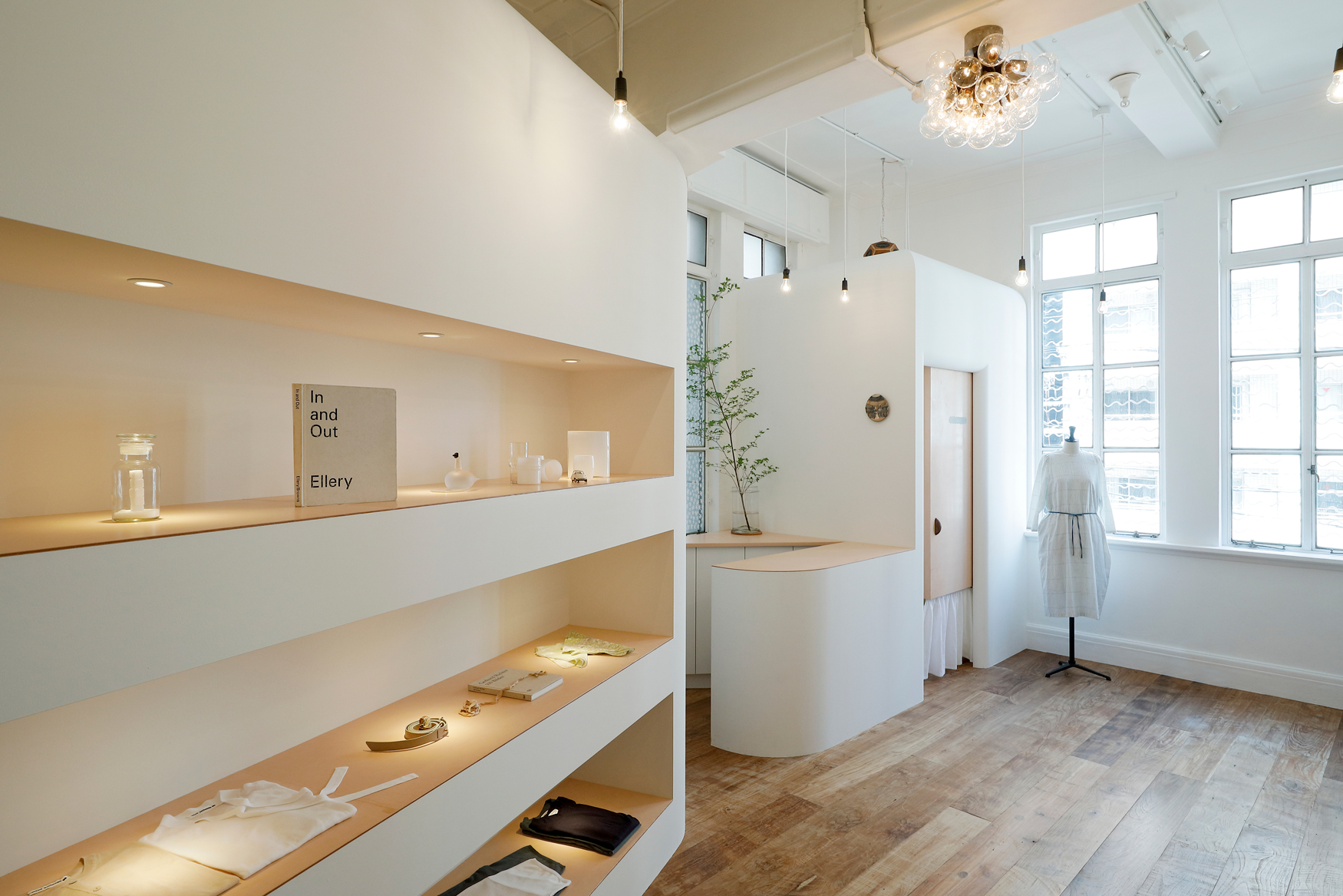 空間はプレーンな表情が映えるようすっきりとした白を基調とし、窓には皆川が描いた鳥や自然の景色が優しい光のもと映し出されます。